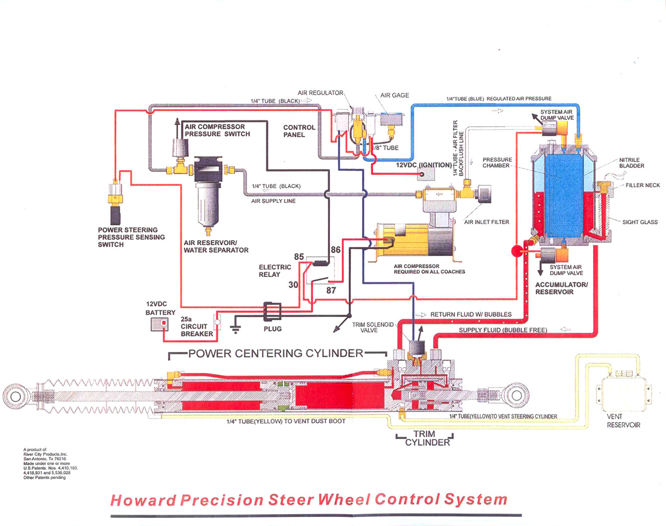 After Dee left Dee Howard Company (DHC), he founded River City Products, Inc. (RCP) to focus on his other engineering passion, automotive engineering. Specifically, to improve highway safety by making heavy over-the-road vehicles directionally stable, less fatiguing, and safer to drive. Dee licensed RCP to manufacture and sell the Howard Precision Steer Wheel Control System, which is still in service on over 3,000 heavy over-the-road buses, trucks, and recreational vehicles that have collectively driven hundreds of millions of in-service miles.